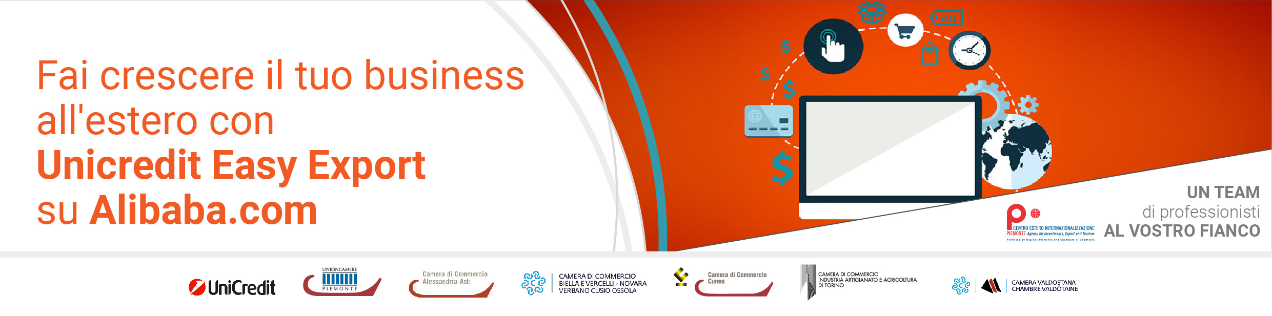 I cambiamenti nelle dinamiche dei mercati e nei comportamenti dei consumatori e degli operatori economici stanno spingendo le aziende a riconsiderare il proprio modello di business e a riorganizzare la propria attività sia di approvvigionamento che di vendita, facendo sempre più ricorso alle tecnologie digitali. In questo contesto l’e-commerce, non solo B2C, ma anche B2B, sta assumendo quindi una rilevanza strategica. “Fai crescere il tuo business all’estero con Unicredit Easy Export su Alibaba.com” è il progetto, gestito da Ceipiemonte e sostenuto dal sistema camerale piemontese e Unicredit, che offre l’accesso al più grande market place B2B mondiale, con una vetrina dedicata e la possibilità di entrare in contatto con numerosi player.