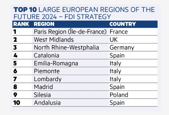 Torino, 17 febbraio 2024 - Pubblicata la nuova edizione del rapporto “European Cities and Regions of the Future 2024” del Financial Times: grande successo per il Piemonte che per la prima volta si è posizionato al 6° posto nella classifica delle regioni europee di grandi dimensioni per la sua strategia di attrazione degli investimenti esteri.