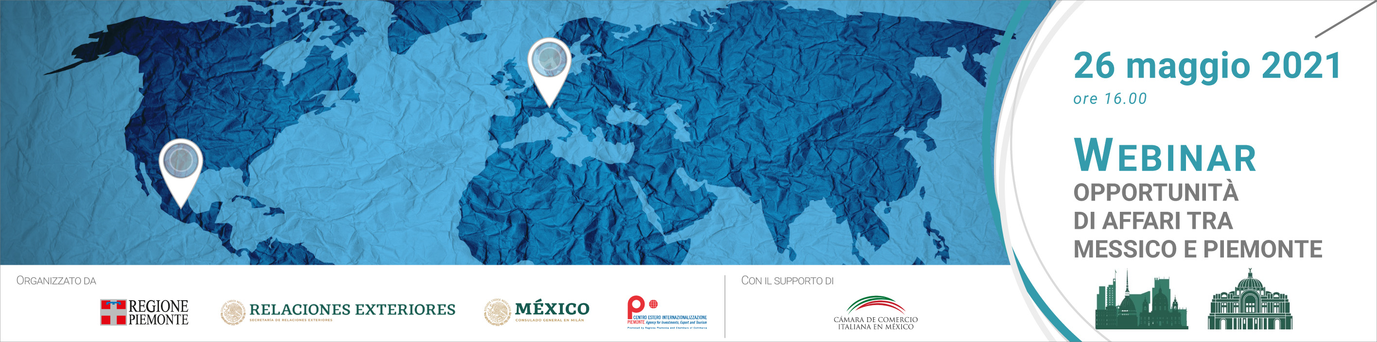 La Regione Piemonte e Ceipiemonte, insieme al Consolato Generale del Messico a Milano e al Consolato Onorario del Messico per il Piemonte e la Valle d’Aosta hanno organizzato il 26 maggio 2021 il webinar Opportunità di affari tra Messico e Piemonte.